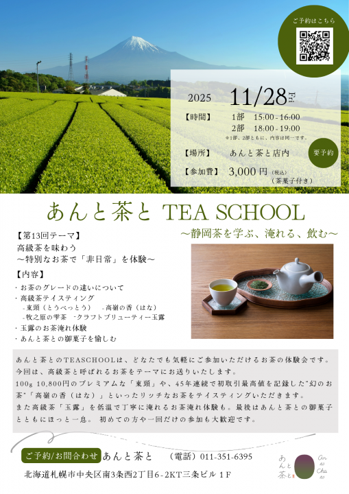 11月開催のTEA SCHOOLのご案内です。